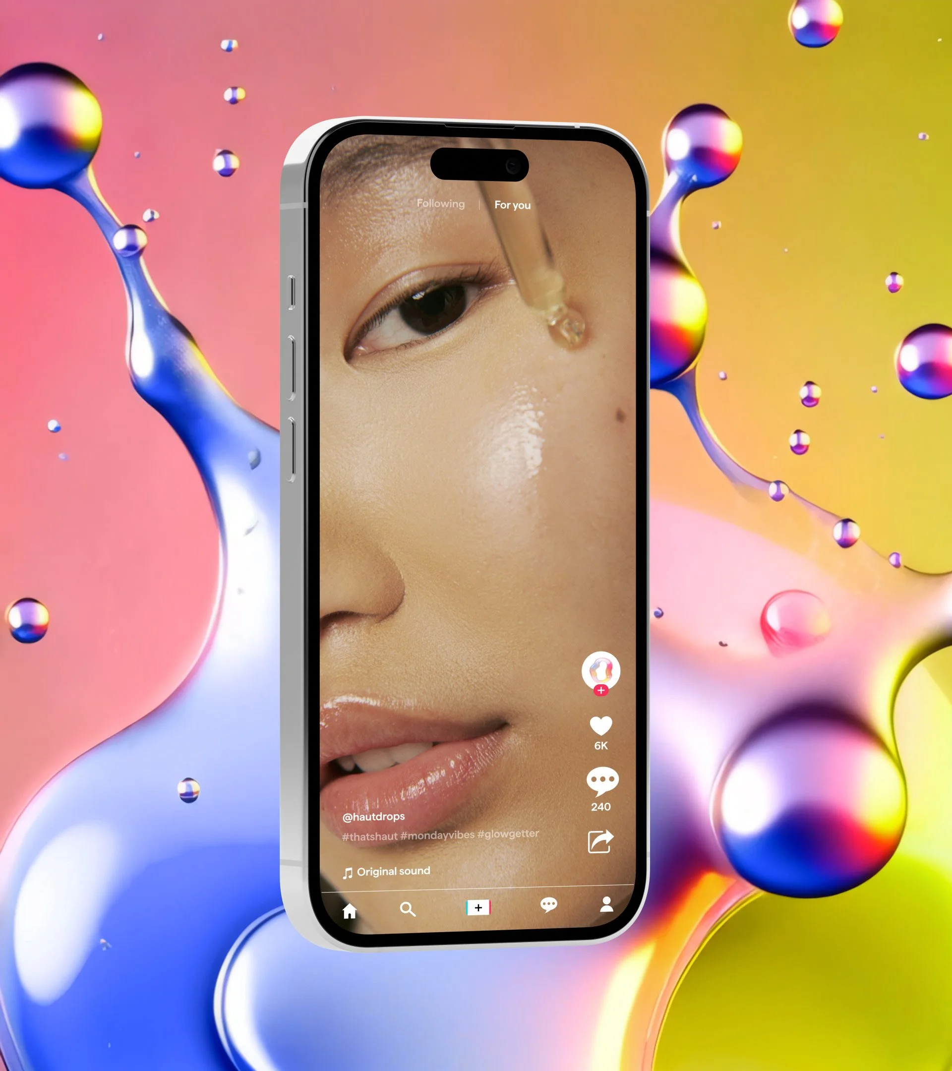 The strategy focused on the behavior of modern beauty consumers, who are drawn to curated, exclusive drops that tap into cultural trends like #mobwife, #coquette, and #tomatogirl. The key insight was that beauty shoppers are motivated by the excitement of limited-edition collections, and Haut Drops needed a visual identity that captured this sense of immediacy, exclusivity, and fun. The challenge was to create a dynamic identity that felt fresh, engaging, and playful while reflecting the impulsive nature of drop culture.
